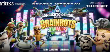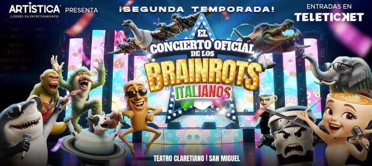 Los personajes más virales del momento llegan al escenario en una historia llena de fantasía, comedia y música en vivo. Conoceremos a Ballerina Capuchina, Tralalero Tralalá, Tun Tun Sahur, Cocodrilo Bombardini y muchos más en una experiencia única para grandes y chicos. ¡Prepárate para reír, cantar y disfrutar como nunca!
