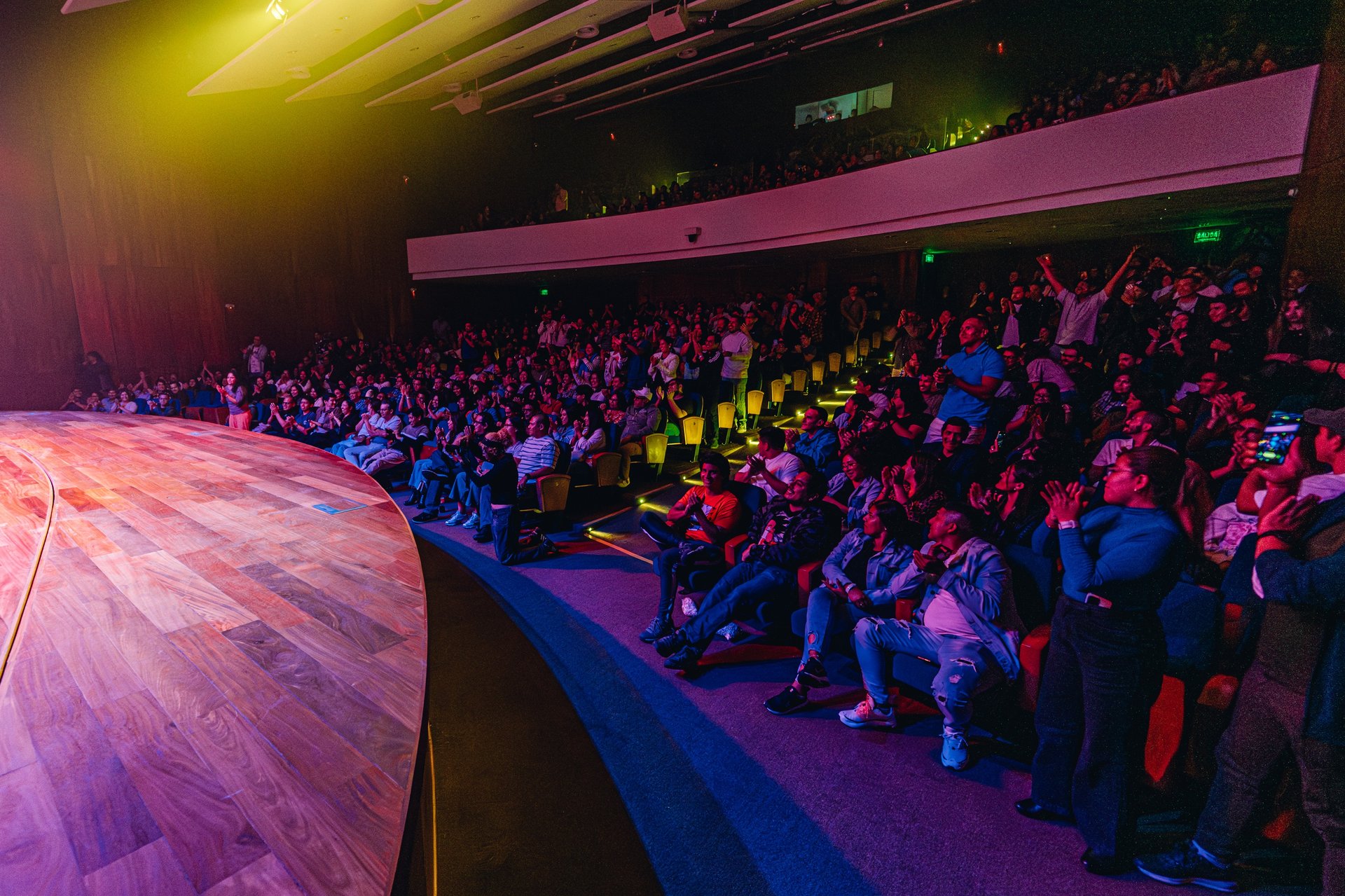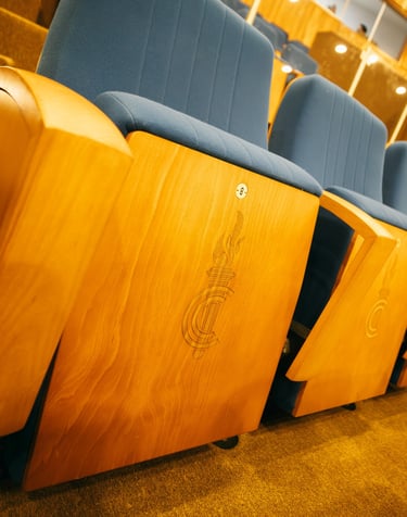 El teatro Claretiano para garantizar el mejor ambiente para la realización de eventos culturales multidisciplinarios. La distribución del espacio y envoltura de madera, potencia la acústica de manera eficaz.