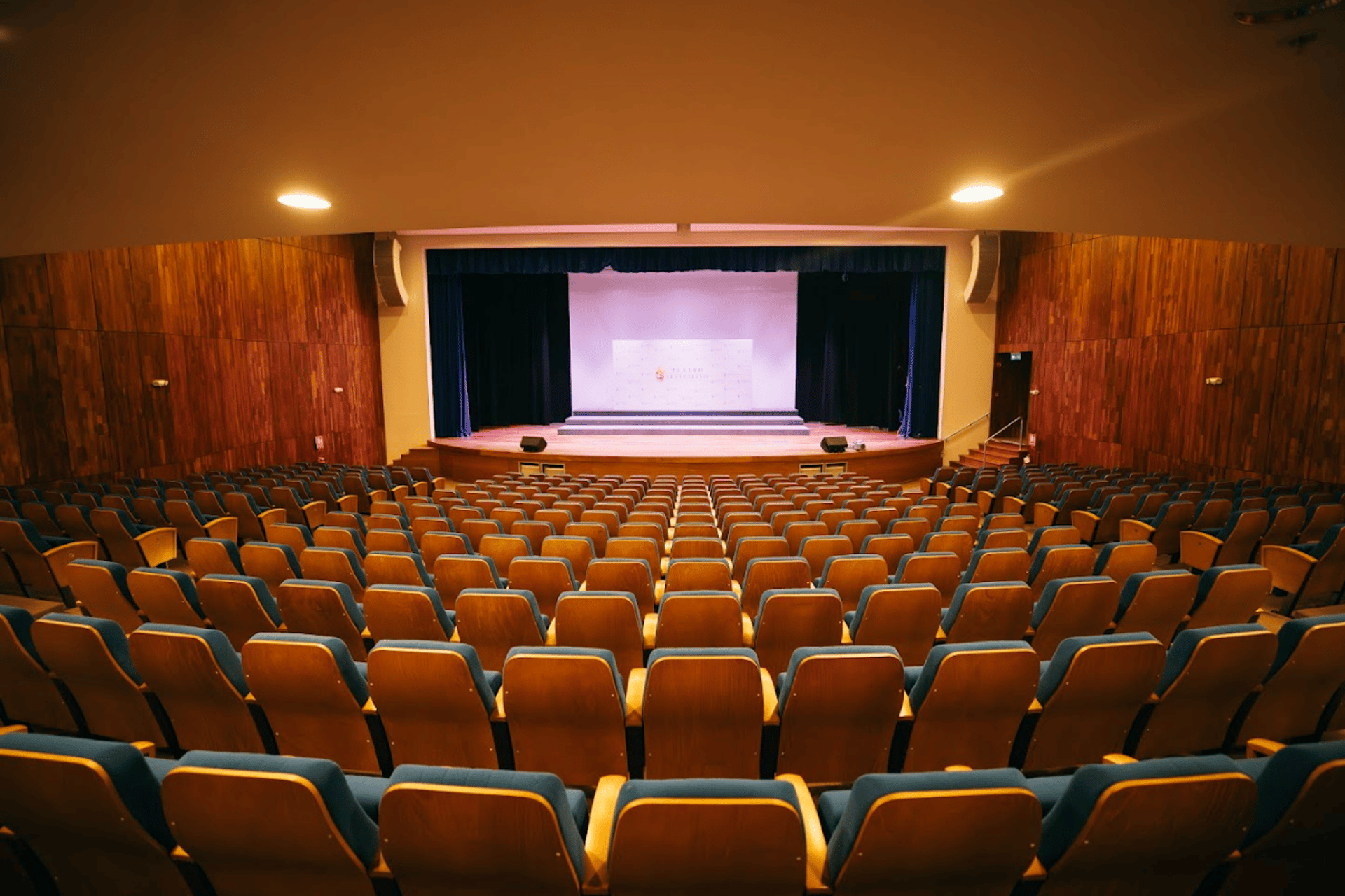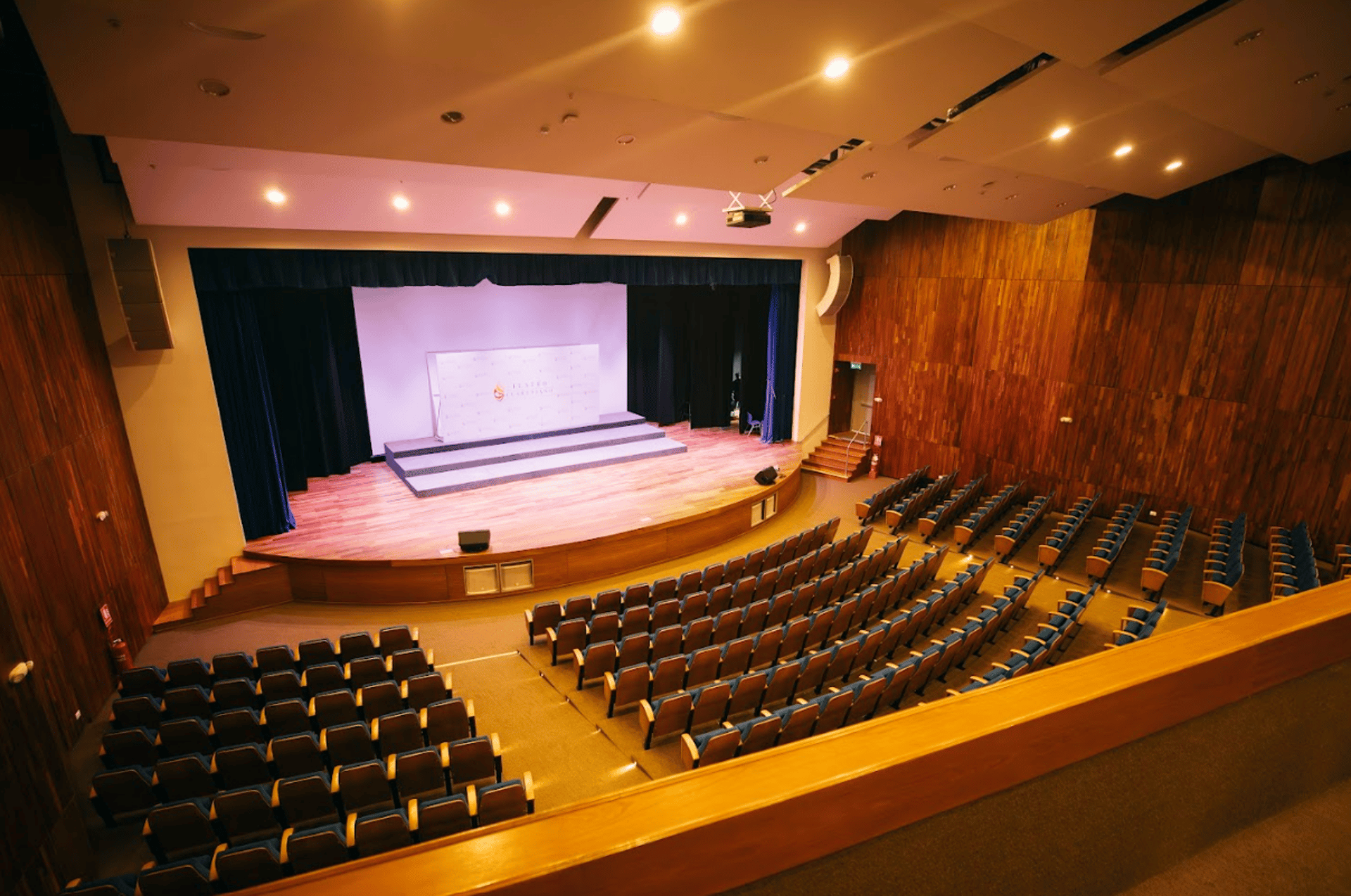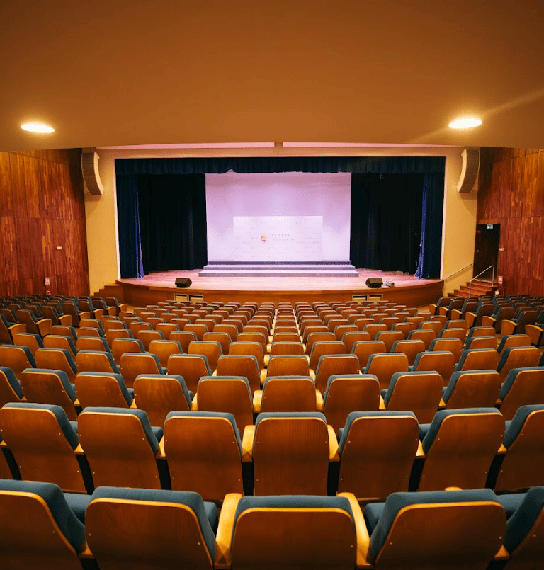 El escenario cuenta con equipos de sonido y micrófonos flexibles para cualquier necesidad de acuerdo al requerimiento, listos para asambleas, conferencias, conciertos, obras y talleres prácticos o artísticos.