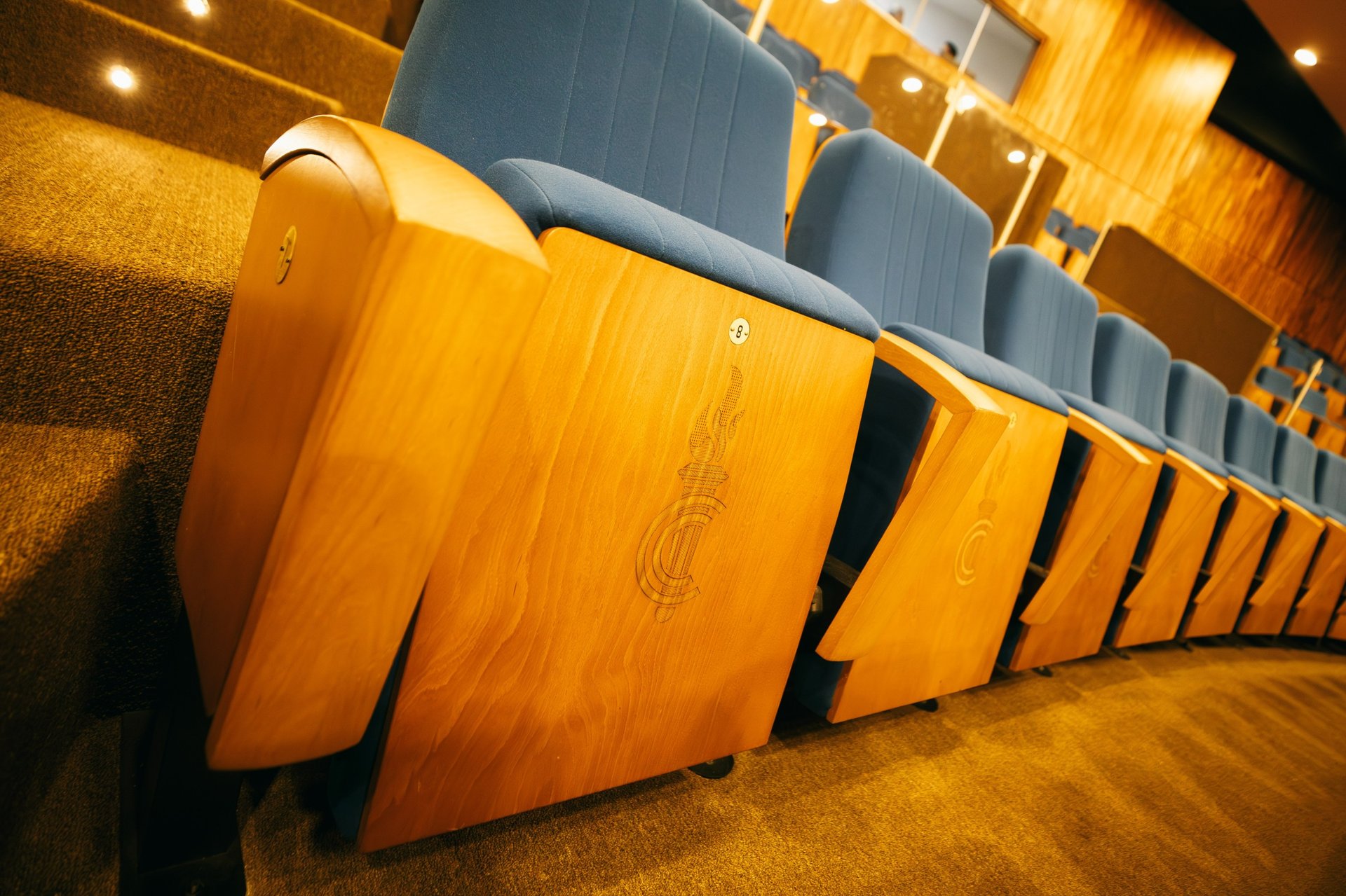 Para la implementación de butacas dentro del Auditorio se eligió como proveedor a la marca Ezcaray Seating, modelo Elegance que consta en una butaca tapizada con estructura de acero y acabados de madera barnizada.